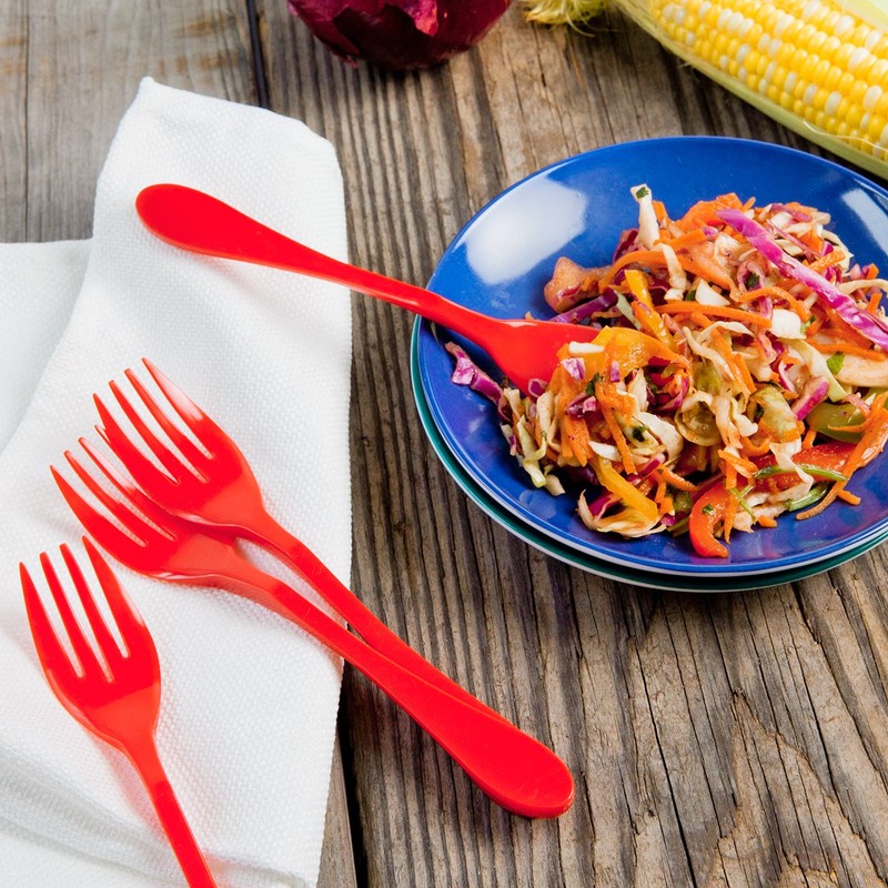• Includes 24 full length dinnerware size forks, perfect for indoor or outdoor use. Vivid red adds a fun pop of color to any occasion