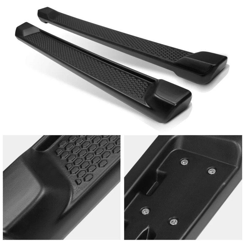 Constructed from high quality grade ABS Plastic, you can be sure this running board will withstand the roughest of weather conditions as well as the test of time. They are built tough and are highly corrosion resistant. Getting in and out of your vehicle is easy with the large non-skid molded pads that ensure secure footing. No drill installation! These running boards are very easy to install with the brackets fitting right into the existing factory holes. By not having to not drill in to your vehicle, your time and effort is saved by you.