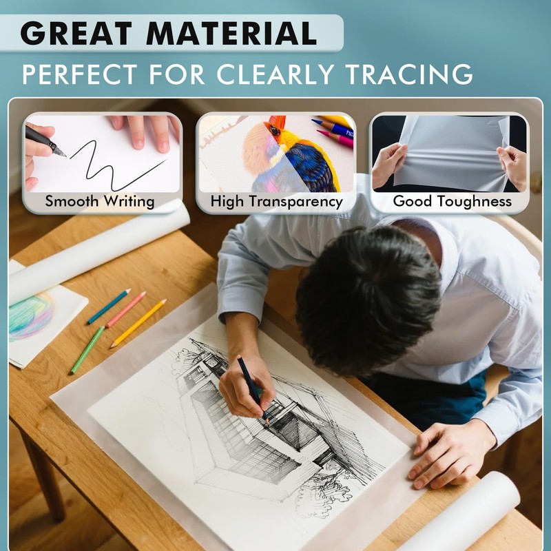 - Wide Application: Its smooth surface allows for crisp lines and precise details, Use it for architectural blueprints, sewing, calligraphy, sketcheing, drawings, tracing, invitations, gift wrapping, and other craft projects.