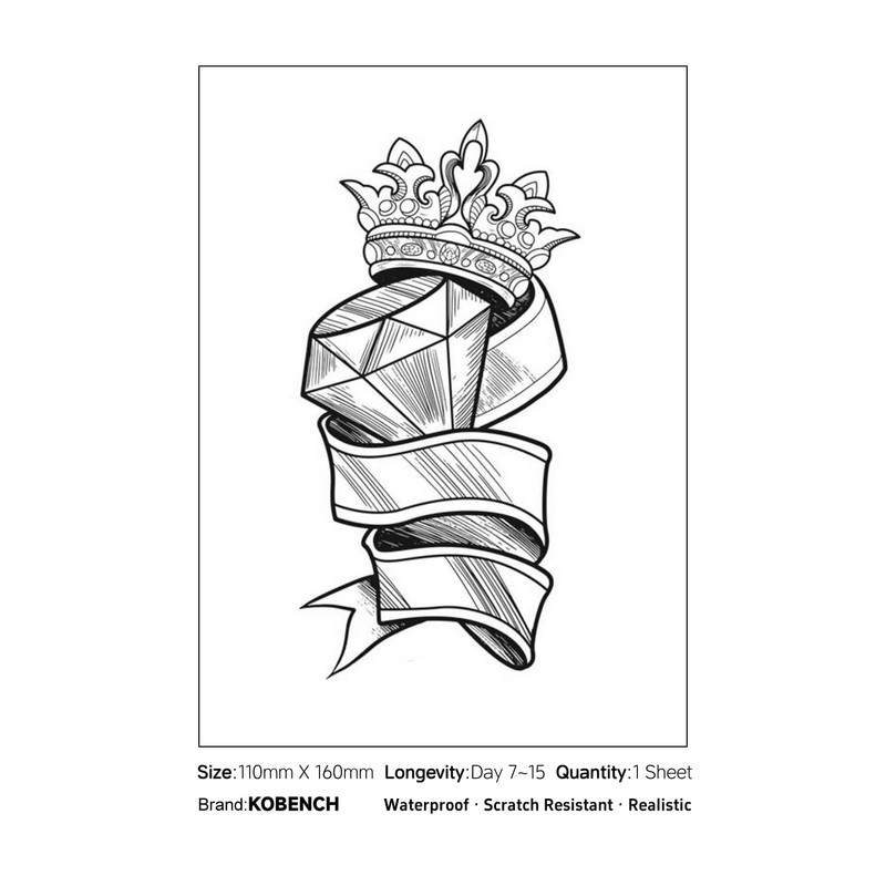 kobench Cool Temporary Tattoos,Diamond With Crown - K12 Design,Waterproof,Easy-to-Apply,Long Lasting 1-2 Weeks, Plant-Based,Diamond Tattoos