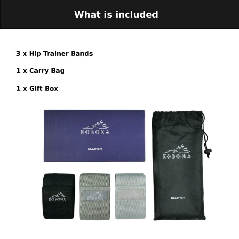 KOBONA 3 PC Hip Band Set (Black/Grey/Light-Grey)