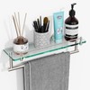 Glass Shelf for Bathroom with Towel Bar,16-Inches Brushed Nickel Floating Glass Shelf with Towel Rack Rectangular Tempered Glass Stainless Steel Glass Shelves Wall Mount Accessories