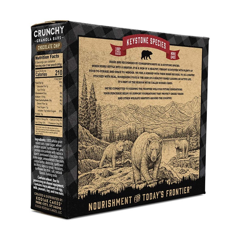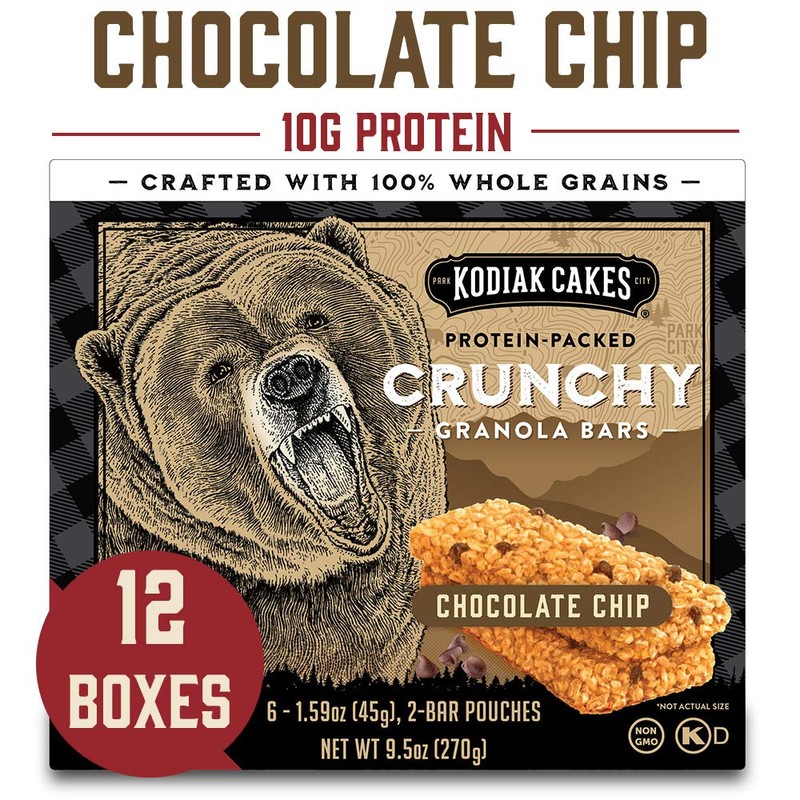 - You will receive a Pack of (12) Boxes of Kodiak Cakes Crunchy Chocolate Chip Granola Bars (72 Pouches Total)