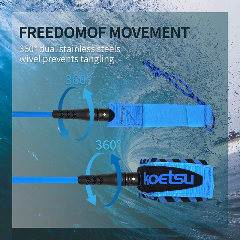 - Heavy-Duty 7mm Polyurethane Cord for Maximum Safety:KOETSU surf leash features an ultra-strong 7mm PU cord designed to withstand powerful waves. Perfect for shortboards, longboards, SUPs, and boogie boards—keeps your board secure even in rough conditions.