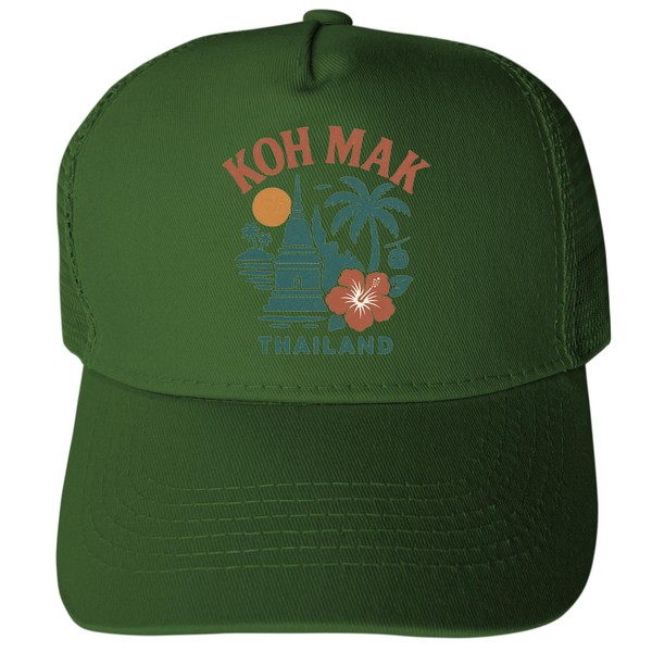 KOH Mak Thailand Keepsakes Green Unisex Mesh Back Trucker Hat with Adjustable Snapback