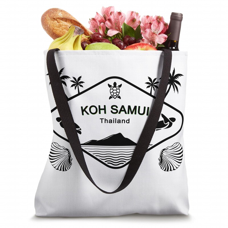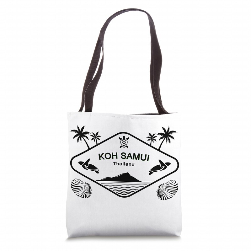 - A tropical design for fans of the island of Koh Samui in Thailand. Features palm trees swaying in the fresh breeze, a sea turtle, seashells, and an island surrounded by the sea. An exotic beach landscape in Southeast Asia with white sand and shady spots.