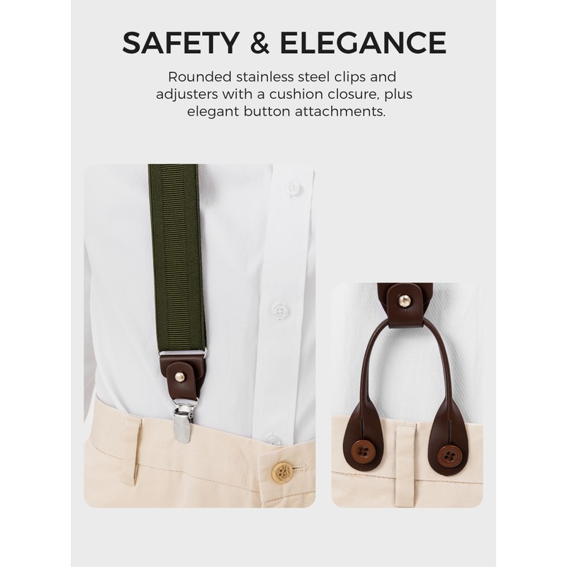 Kohentact Suspenders for Men with Clip & 6 Buttons 1.4in Y-Shape Stainless Steel