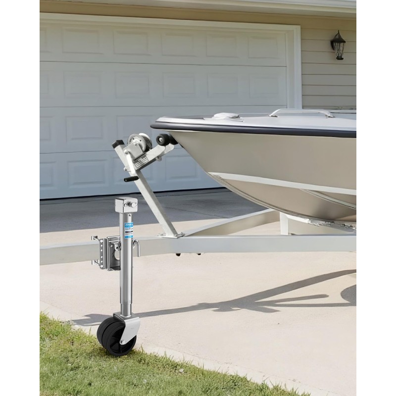 - Easy Bolt-on Design – Equipped with 4 long screws and 2 mounting parts, this RV tongue jack can be quickly and securely bolted onto the trailer frame. ##Only install in the trailer frames less than 5 inches (12.7 cm) in height. Ideal for travel, horse, boat, yacht, and utility trailers
