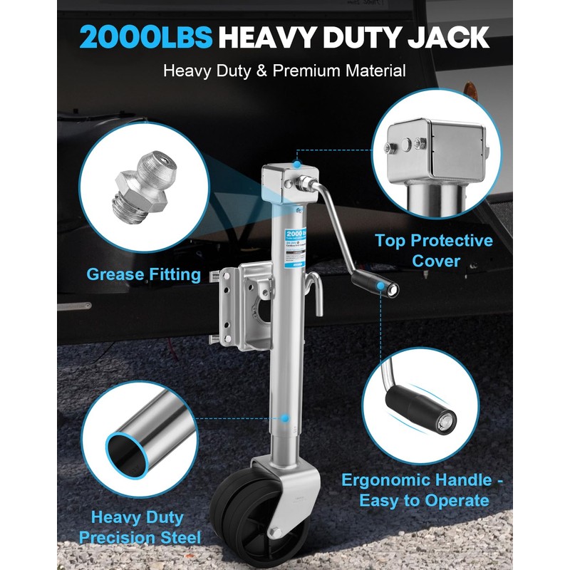 - Heavy-Duty, Sturdy Construction – Built from high-strength and heavy-duty steel, Kohree trailer jack features a galvanized surface, thickened tubes, and strong and corrosion-resistant. Supports up to 2,000 lbs and easily adjusts in height from 26 to 38 inches