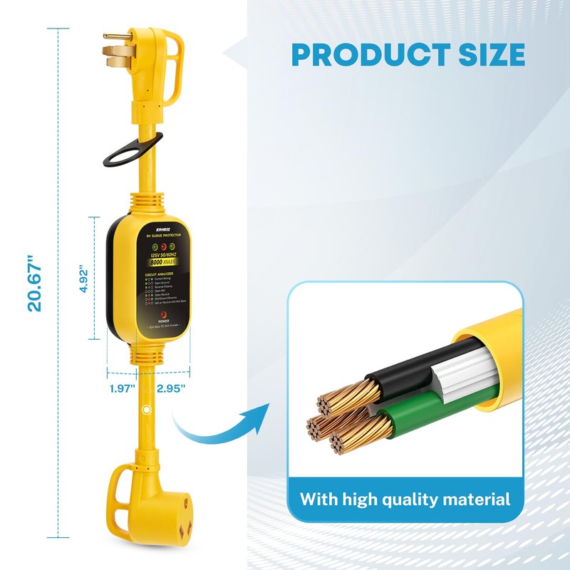 - 【8000 JOULES SURGE PROTECTION FOR RV】Kohree 30/50 amp surge protector for camper absorbs high voltage spikes within 1 ns. It safeguards your RV's electrical gear against hazardous voltage fluctuations, electrical disruptions, and abrupt power spikes resulting from thunderstorms.