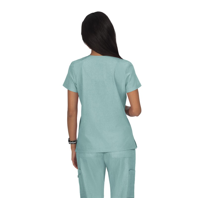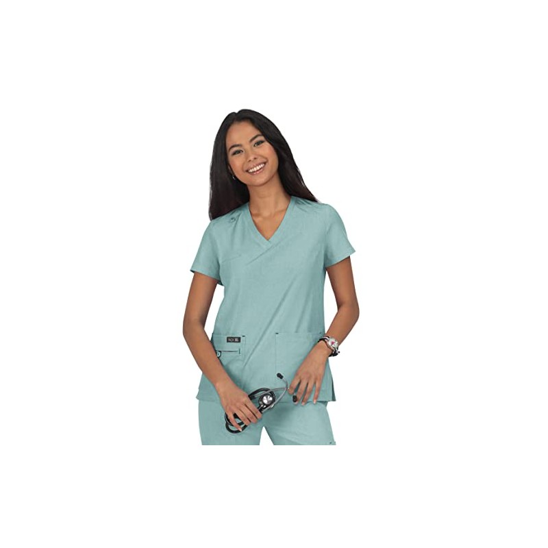 KOI Basics Becca Women's 4-Pocket Stretch Scrub Top Heather Sage Large