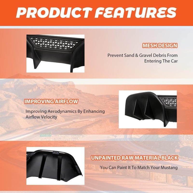 - BETTER PERFORMANCE - This rear bumper lip diffuser enhances your vehicle's aerodynamics by smoothing the airflow under the vehicle, improving stability at high speeds, giving your ride a sporty feel and enhanced handling characteristics.