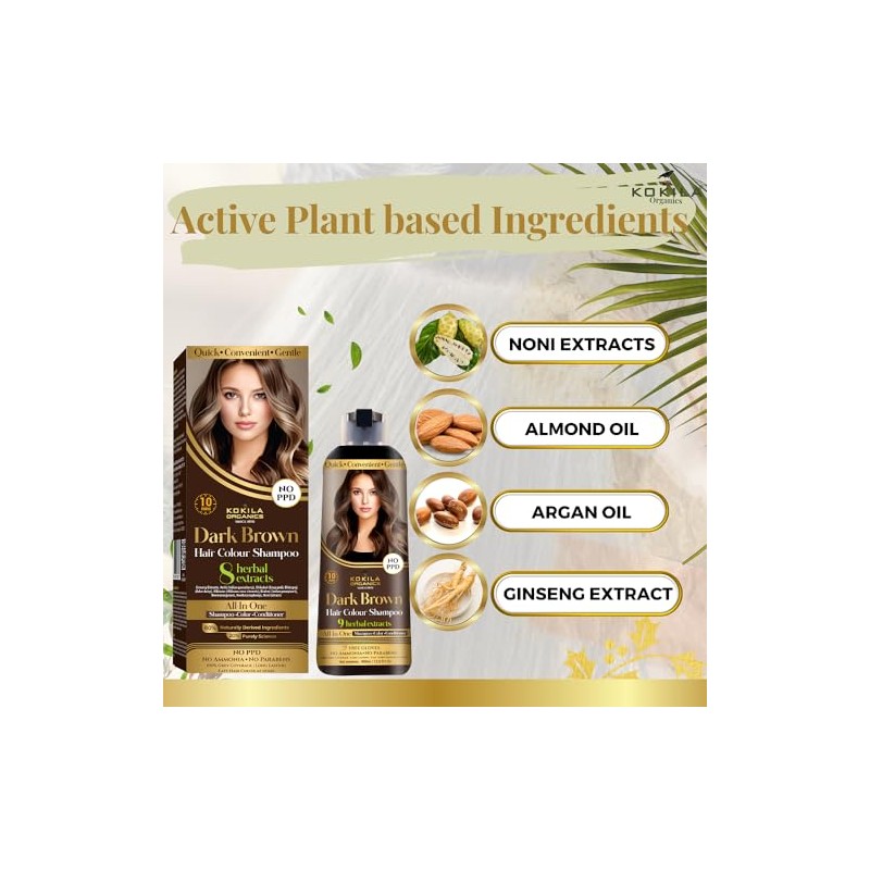 Kokila NO PPD Shampoo Hair Colour - Dark Brown 400ml for Women and Men | Natural Extracts | Colours Hair in 10 Minutes | Ammonia Free, Paraben Free - 10 Pair Free Gloves