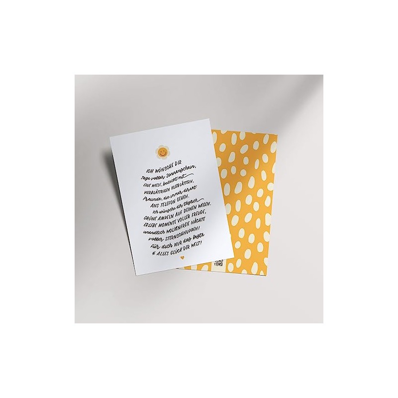 - ♥︎ Folding card in DIN A6 format with white, writable inside.