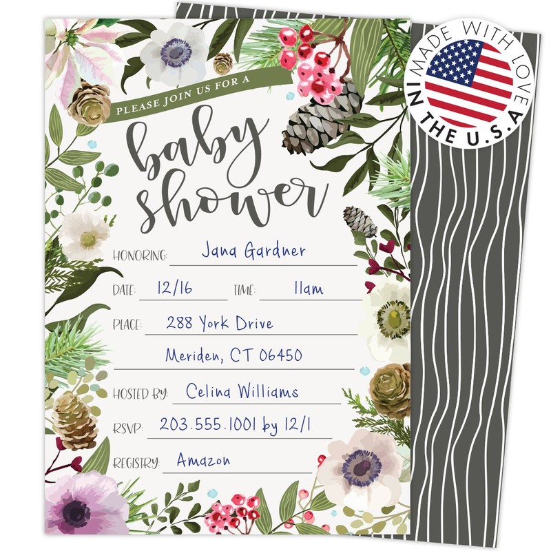 - ♥ DESIGNED AND MADE IN THE USA: Simple yet elegant winter floral design with pine cones, holly, and other elements, perfect for winter baby showers.