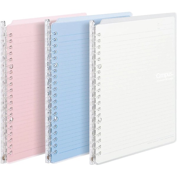 - [3 Notebook-Like Binders] B5 Kokuyo's Campus Smart Ring binder notebook, 26 holes 10.6x8.2 inches sprial notebook binder has frosted PP light pink blue clear covers, and the maximum capability is 25 sheets loose leaf binder papers.