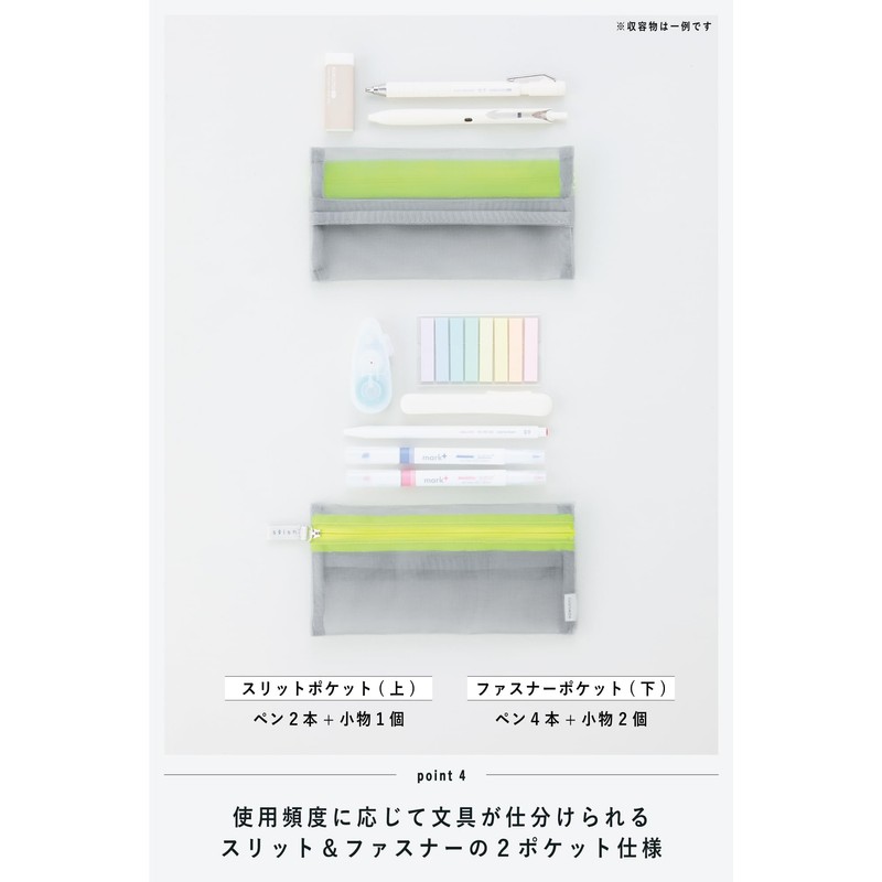 - Mesh pen case with slit pockets for smooth access