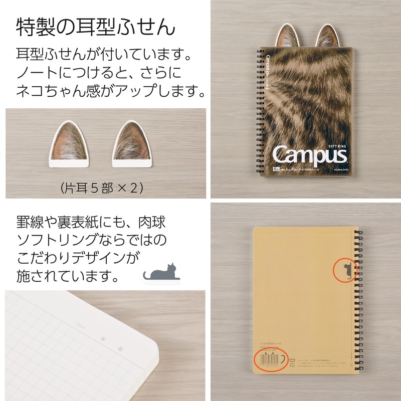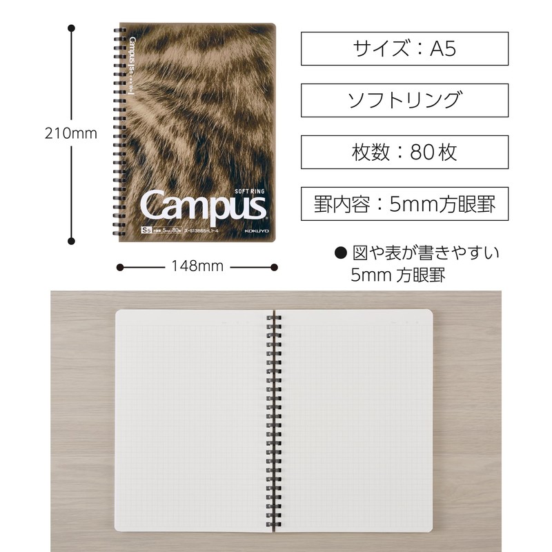 Kokuyo S138S5-L1-4 Campus Paw Soft Ring Notebook, A5, 0.2 inch (5 mm) Squared...