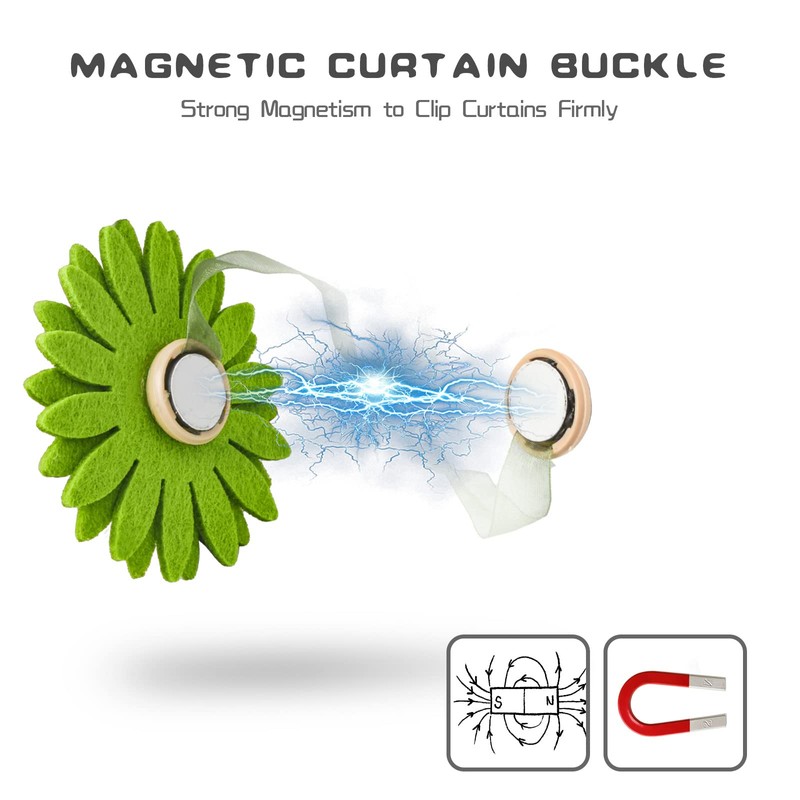 • 【Strong Magnetic Clip】- Two magnets have stronger force to clip the curtains and also easy to take off. when you pull up and hold curtains, magnetic curtain tie backs can hold the drapes tightly, not fall off. Or, just clip it on curtains simply when not in use, decorative and easy to find. Unique flower shape design let your curtains look attractive.