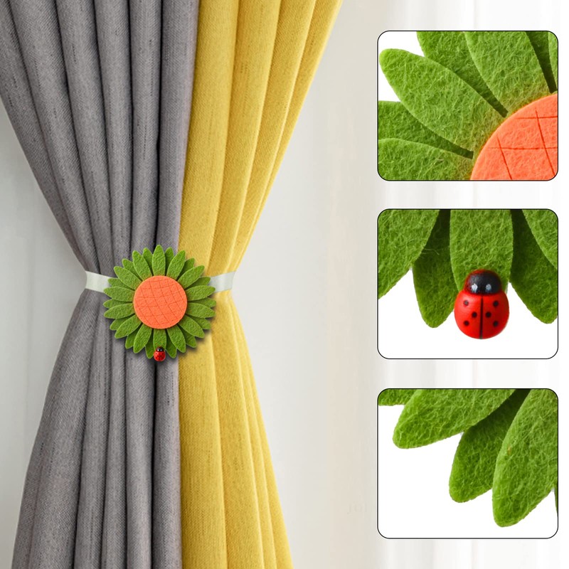 • 【Durable Quality & Guatantee】- Sunflower magnetic curtain tiebacks with wear-resistant and durable material, for long-lasting use. The cute natural curtain tiebacks are suitable for room, nursey room, kids’ bedroom, living room, office, balcony curtain or outdoor patio draperies.😀 If you have any questions about our curtain tie backs rope, please contact us and we will solve for you in 24 hours.
