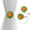 KOLAKO Magnetic Curtain Tiebacks, Sunflower Tie Backs for Curtains, Decorative Magnet Rope Holdbacks Clips Window Drapery Holder Treatment,Green Curtain Ties Backs Pair, 2 Pack