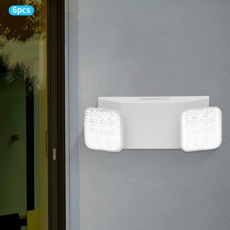 KOLHGNSE 6 Pack LED Emergency Lights, Dual Head Exit Light with Battery Backup 3H Runtime, Wall Ceiling Mount Office Hotel Stairway (White)