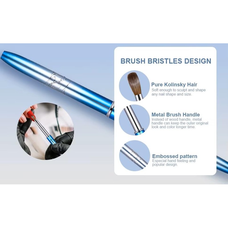 - Comfortable and 【Suitable for All Nail Art】The acrylic nail brush for acrylic nail extension or carving, lightweight and comfortable, easy holding to draw, smooth application. A perfect nail tool for nail pros or nail beginners, great for professional salons and home DIY nail art..easy to handle.