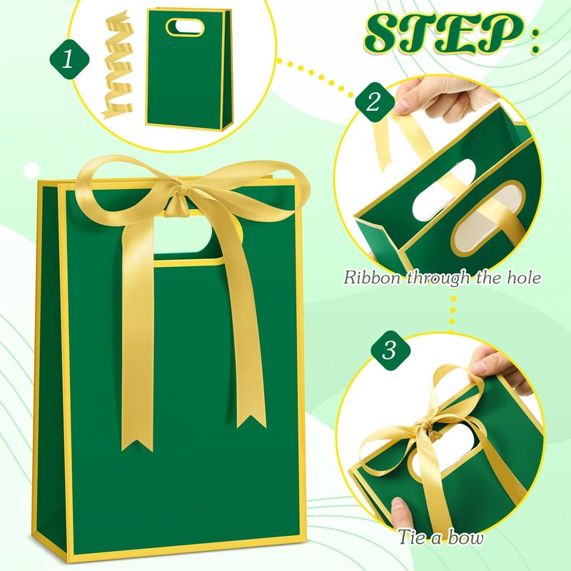 - Elegant Bow design: our wedding gift bags are designed with green and gold borders, matching with gold bow ribbons, stylish and elegant, adding a sense of refinement to your gifts; There is no text on the gift bags, but you can write your blessings on the bags to express your care and gratitude to the guests