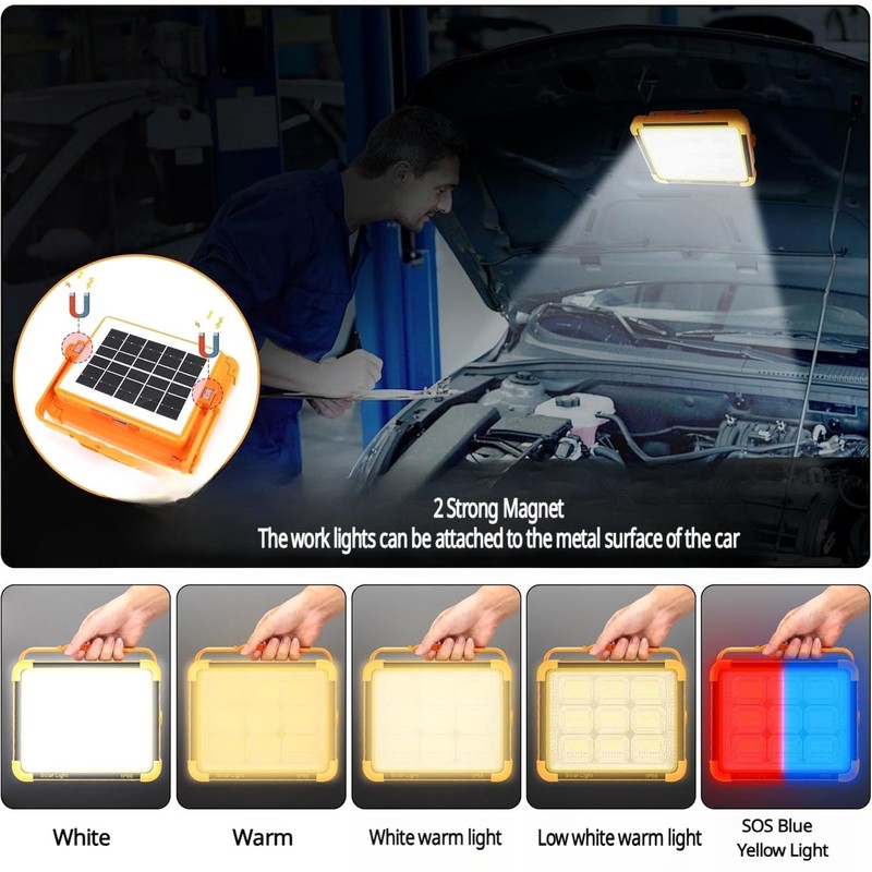 - [IP66 Waterproof Camping Light]: The rechargeable work light is IP66 waterproof, it is suitable for camping, fishing, traveling, repairing cars in emergency, also as a backup in case of power failure. Ultra bright lighting can also be used in workshops, construction sites, docks and other places where lighting is required.