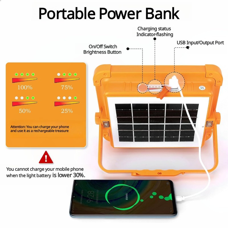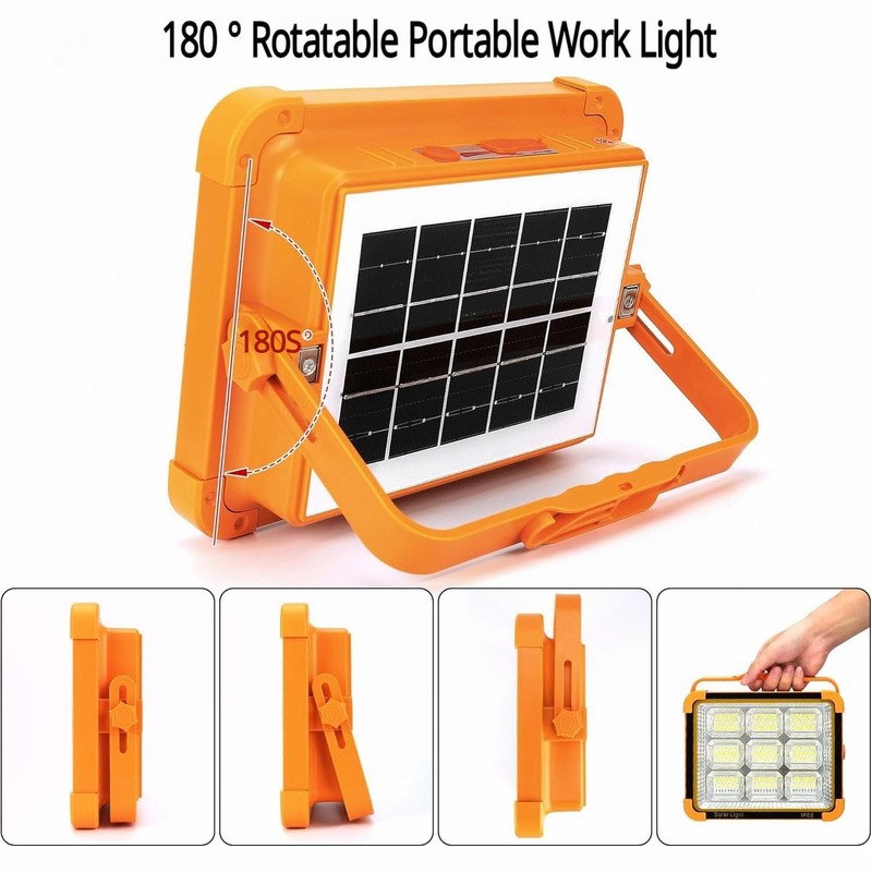 KOLLNIX KOLLNIX Solar LED Rechargeable Work Light - 100W Portable Emergency Light with 5 Lighting Modes - Power Bank LED Flood Spotlight Lamp for Garage, Hiking, Yard, Outdoor, Car Repairing, Fishing