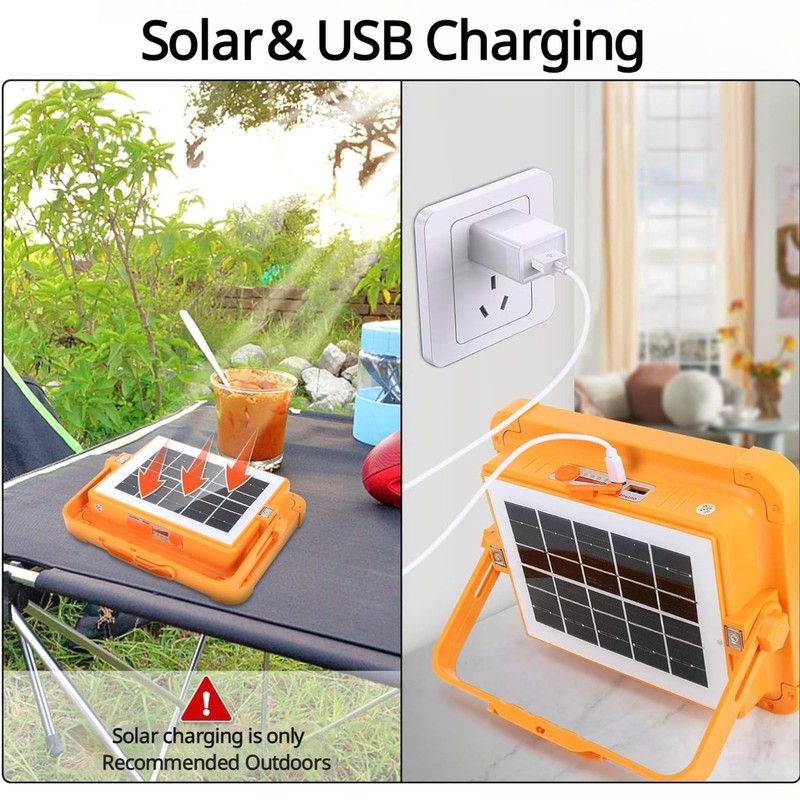 - [Rechargeable Led Work Light]: This LED headlamp is equipped with a rechargeable 16500mAh battery. It can be charged by Type-C cable or solar panel. When fully charged, the work light can last 7-12 hours due to the brightness of the rechargeable led work light.