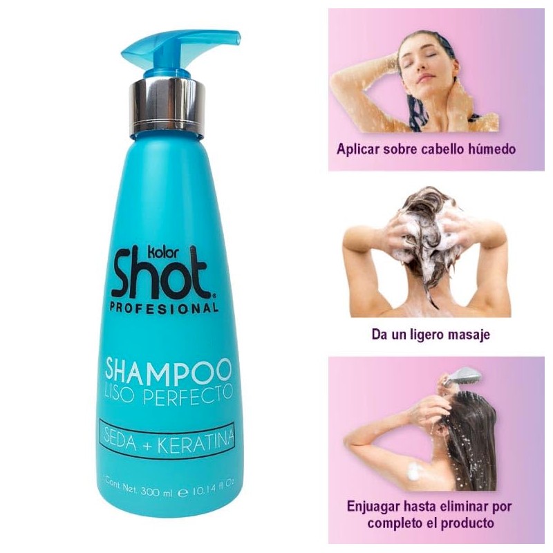 Kolor Shot Kit de Shampoo y Tratamiento Liso Perfecto con Seda y Keratina, 300 ml c/u