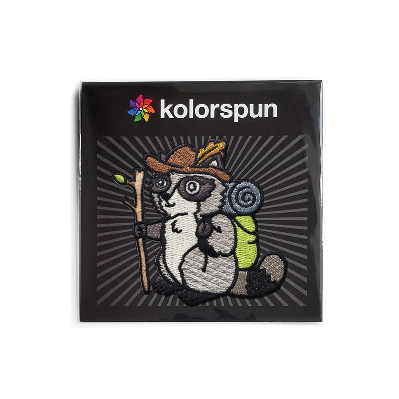 Kolorspun Raccoon Hiker Patch - Iron On Embroidered Patch