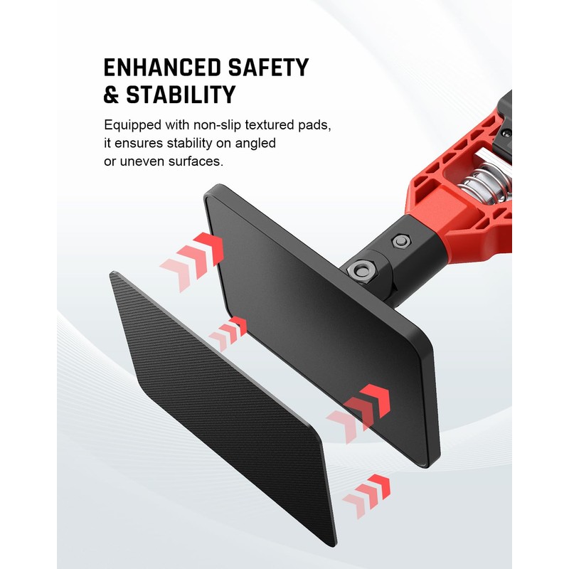 - 360° Adjustable Handle and Angle: The main handle rotates 360° for versatile positioning, while the support plate adjusts up to 30° left or right. Equipped with non-slip textured pads, it ensures stability on angled or uneven surfaces, making it ideal for challenging construction environments