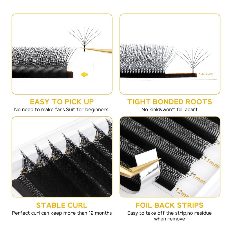 - Saving Time&Easy To Apply: The W-Shaped Premade fan lash are made in advance, so you don't need to spend time making fans. Apply and picking up quickly, no glue residue, 1 tray eyelash can be used on 10-15 customers, save time and money.