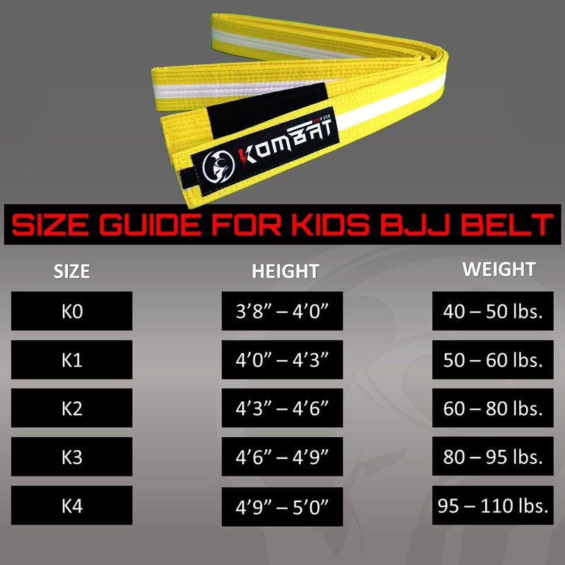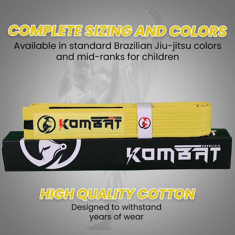 KOMBAT USA Premium Quality Kids Brazilian Jiu Jitsu Belts, Martial Arts BJJ Belts for Boys & Girls with BJJ Ranking Stripes, Yellow, K4