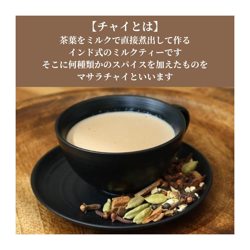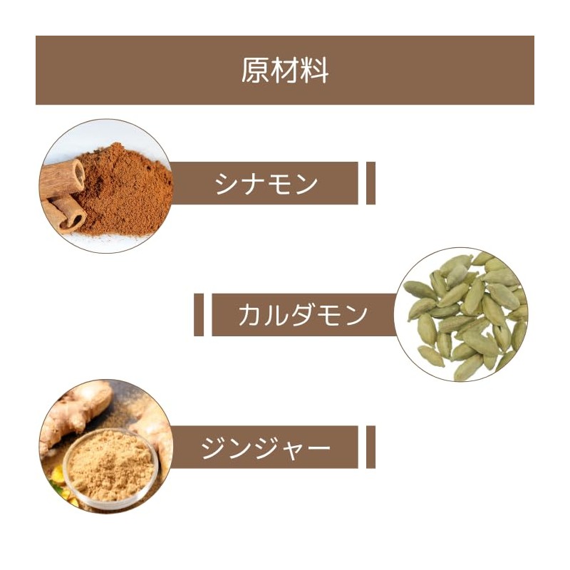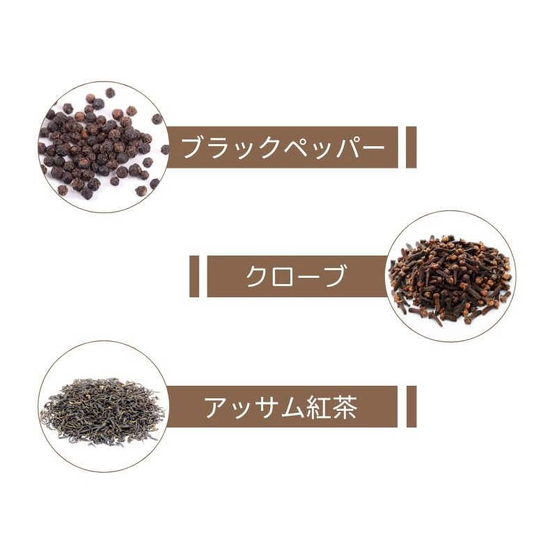 - Ingredients: Cinnamon (Vietnam), Cardamon, Ginger, Clove, Black Pepper, Assam Leaf Tea