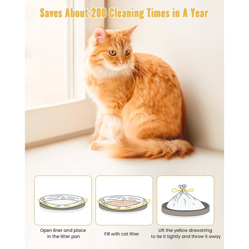 - Convenient Cleaning: The litter box liners have drawstring handles, when ready for changing, just pull drawstrings. Drawstring feature makes it easy to cleanup your cat litter box, save your cleanup time, perfect for the busy household of cat lovers