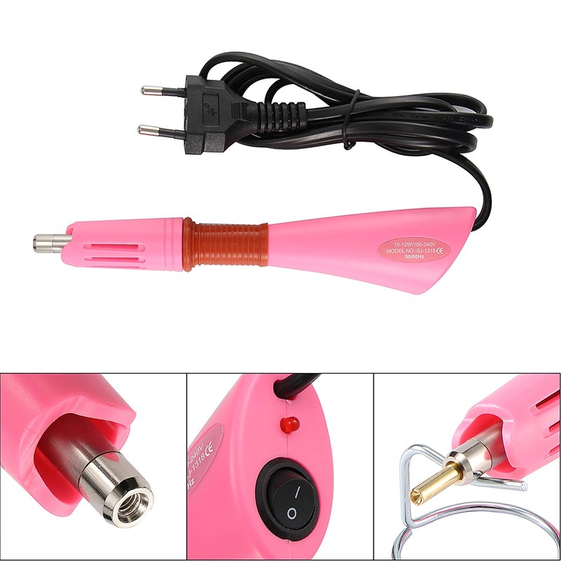 - SUPERIOR PERFORMANCE The rhinestone patch features an on/off switch with a red LED indicator, a comfortable grip and an extra long cable. Fast heating time and quality. Equipped with safety stand and 5 different applicator tips for applying Duroplast crystals in different sizes.