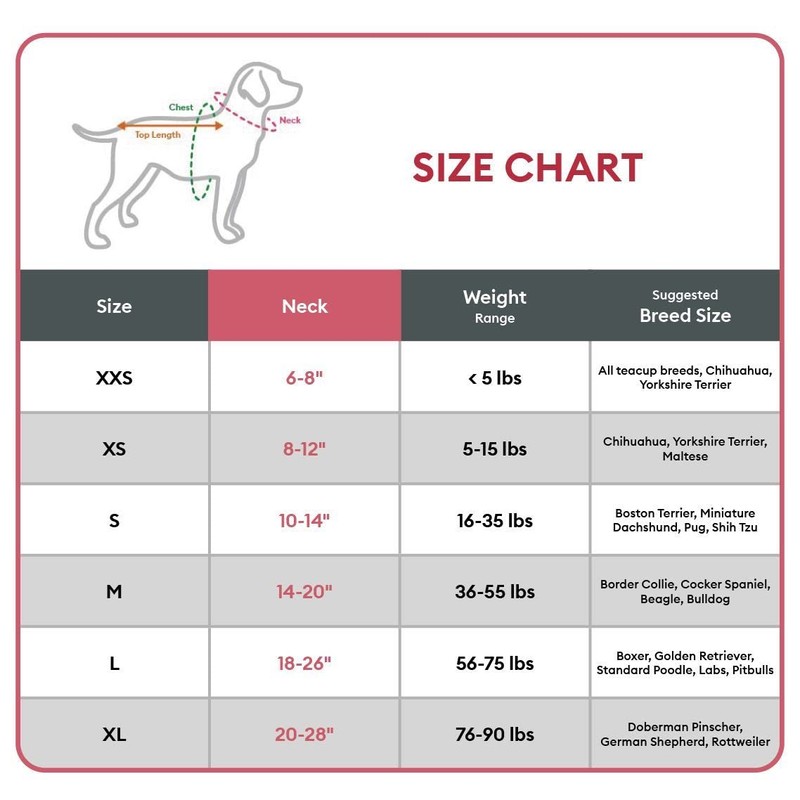 • Sizing: Medium: Neck Size: 14-20 in & 1.25" Wide Large: Neck Size: 18-26 in & 1.5" Wide X-Large: Neck Size: 20-28 in & 1.75" Wide.