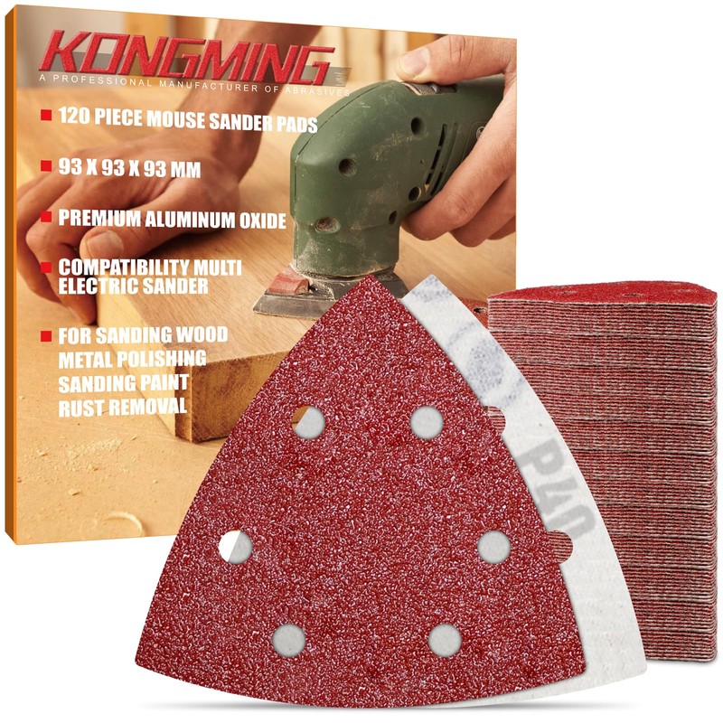 KONGMING Sandpaper Triangular Sander, Velcro, 6 Holes, Pack of 120, Grit 40 S...