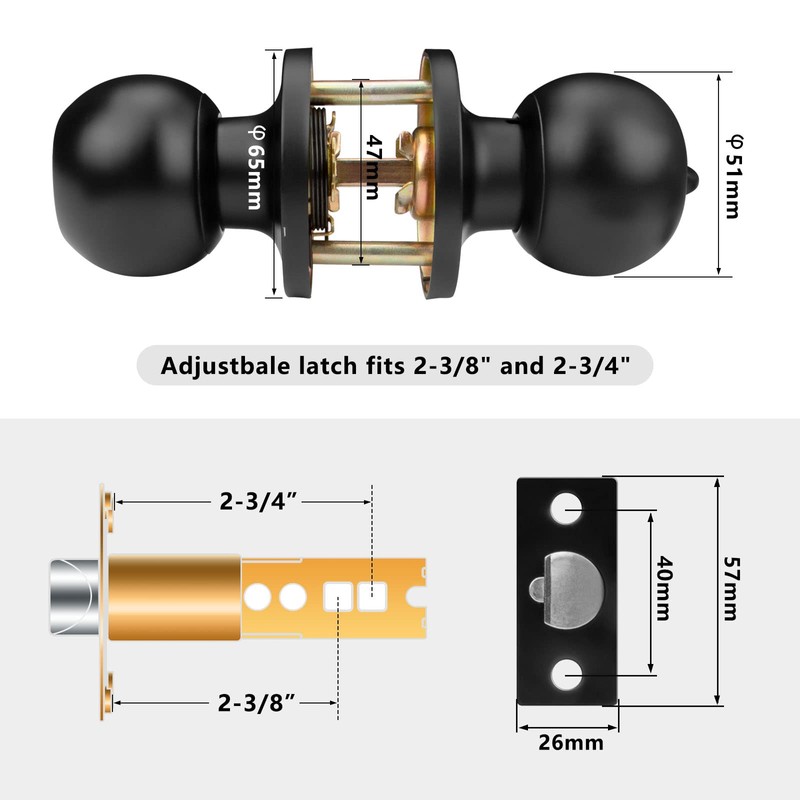 - 【DIMENSIONS】Adjustable latch to fit the two most common back sets in the U.S. (2-3/4-inch and 2-3/8-inch). Door thickness: 1.38” to 1.75”.