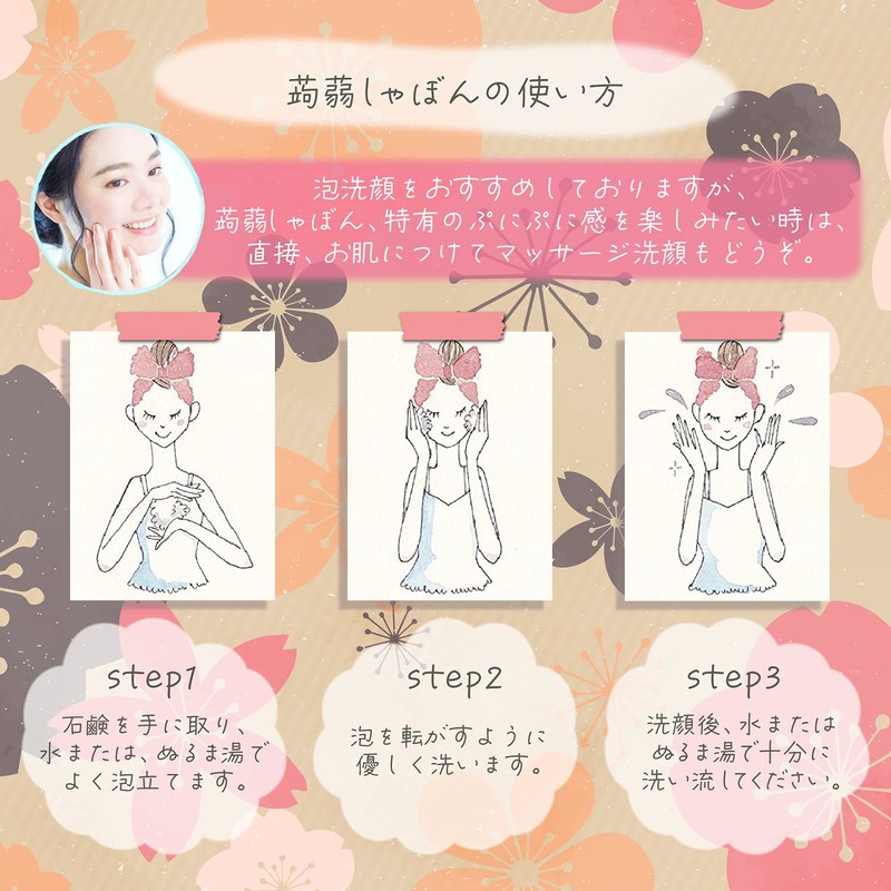 - (Birth of Kennyaku Shabon) The 102% of the plant derived from the crunchy konyaku shabon and the vibrant colors of the natural materials are all intentionally miraculous products. In Konyaku and Lamekko daily research that we wanted to create soap that contains the good ingredients of Kintyaku in the hand of "Pururu" and the moment of the day, the "Puppuru" was born, and the "Natural Beautiful Colors" and "Katsukaku Shabon" was born