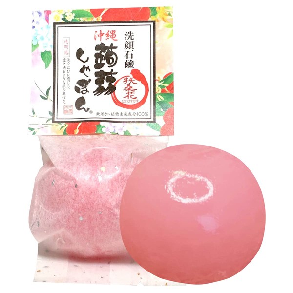 Konjac Shabon Okinawa Konjac Shabon Hibiscus 2.8 oz (80 g), Facial Cleansing Soap, Ceramide Formula, Additive-Free, Transparency, Moisturizing, For Dry and Sensitive Skin