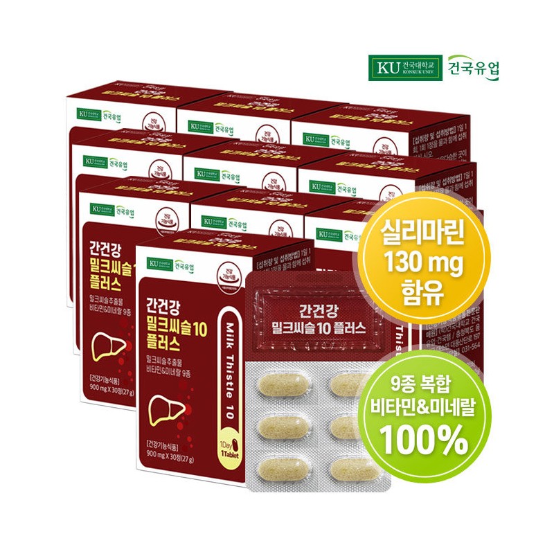 Konkuk Dairy Products [On Sale] [Konkuk Dairy Products] Liver Health Milk Thistle 10 Plus 30 tablets x 10 (10 months) / 건국유업 [온세일][건국유업] 간건강 밀크씨슬10 플러스 30정x10개(10개월)