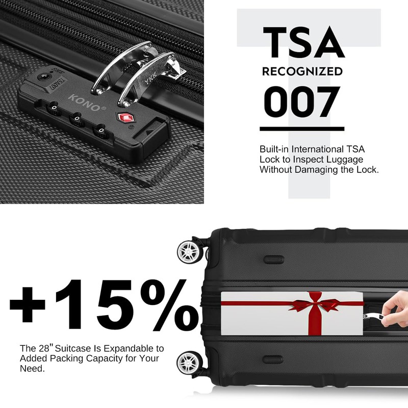 - 【DURABLE + 2 YEAR LIMITED WARRANTY】Made from protective, lightweight hardside ABS shell, scratch and pressure-resistant, dirt-proof and waterproof. Kono durable luggages go through insanely strict quality control test standards, to ensure our products can withstand the rigour of modern transport. Also Kono offers trustful warranty service!