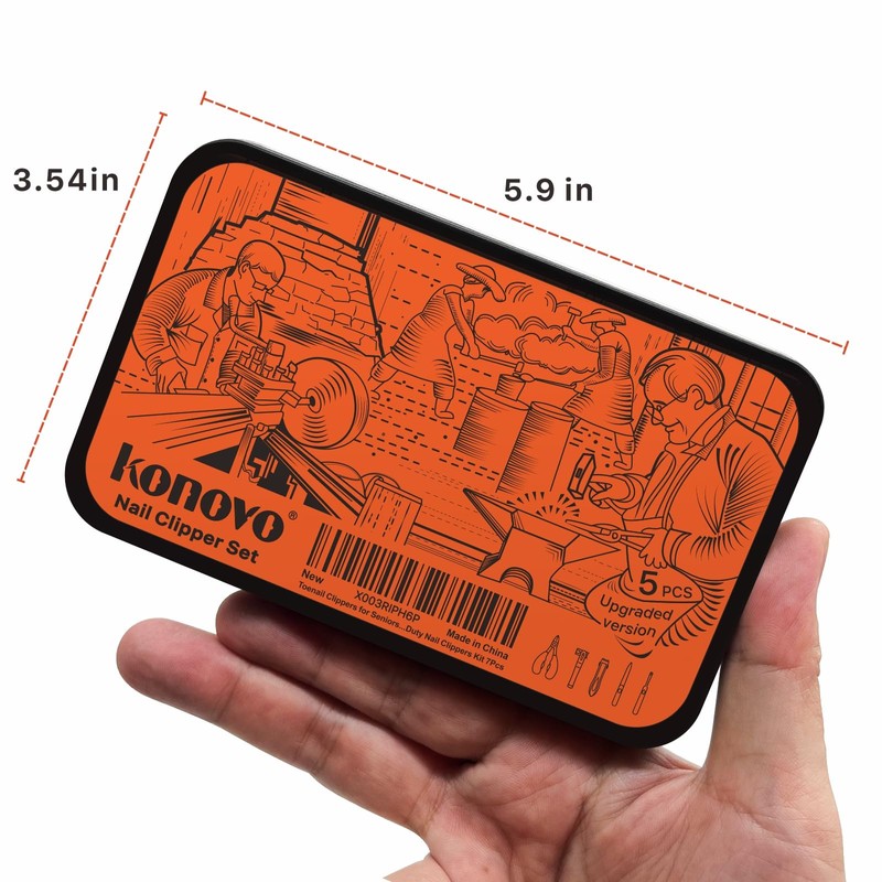 Introducing our Toenail Clippers Kit, a complete personal care tool kit designed specifically for seniors with thick toenails. This kit includes 7 essential tools to help you maintain healthy nails and overall hygiene.The kit features heavy-duty toenail clippers with a new and improved 25° sharp curved blade design. This curved blade allows for easy trimming of thick nails, even ingrown nails, and provides a comfortable grip with its rubber handle. Say goodbye to painful and difficult toenail clipping sessions.Our 360°Rotating nail clippers are a game-changer. The clipper head can flexibly rotate 360° degrees, allowing you to find the perfect angle to cut your nails without straining your wrists or contorting your body. This feature is especially beneficial for individuals with poor flexibility, limited dexterity or strength, diabetes, arthritis, or other diseases.In addition to the toenail clippers, this kit also includes a nose hair trimmer. Our precision rotating structure ensures a safe and effective trimming experience. The grip is perfectly designed to allow for easy pressing and rotating of the ultra-sharp double-edged blade. This nose hair trimmer is manual and requires no batteries, making it hassle-free and convenient to use.But that's not all! We've also included three additional tools to meet your other daily needs. The package includes an earwax removal tool, a nail lifter, and a nail cuticle trimmer. These tools come neatly packaged in a beautiful stainless steel box and are accompanied by a convenient storage bag. No more worrying about misplacing your tools or struggling to keep them organized.Our Toenail Clippers Kit is a must-have for any senior with thick nails. Whether you struggle with ingrown nails or simply need a reliable set of tools for personal grooming, this kit has got you covered. Invest in your health and wellbeing with our high-quality, durable tools that provide comfort and ease of use. Say goodbye to cumbersome, ineffective tools an