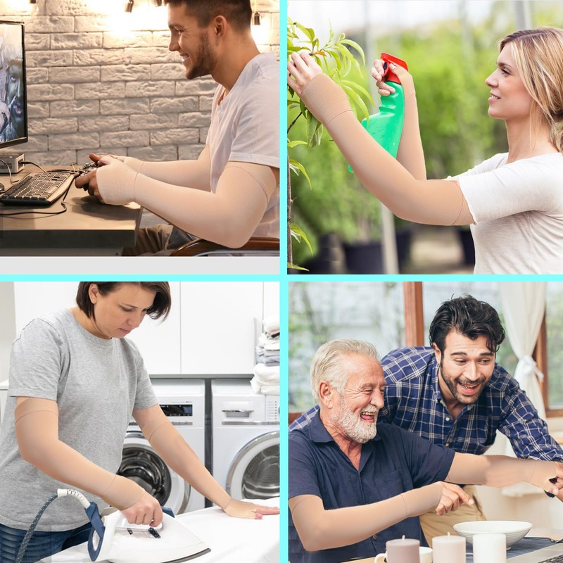 • 【Perfect fit for daily wear】Our Gauntlet Arm Compression Sleeve is suitable for all kinds of indoor and outdoor sports,such as running,fitness exercise,basketball,weightlifting,fishing,driving,etc.Great for gardening, typing,cooking,mouse hand exercising,housework,post-operative arm recovery,and construction workers,teachers,flight attendants, nurses and other professions.These arm support sleeves work for women & men.Please refer to the SIZE CHART on the left images and choose the appropriate size.