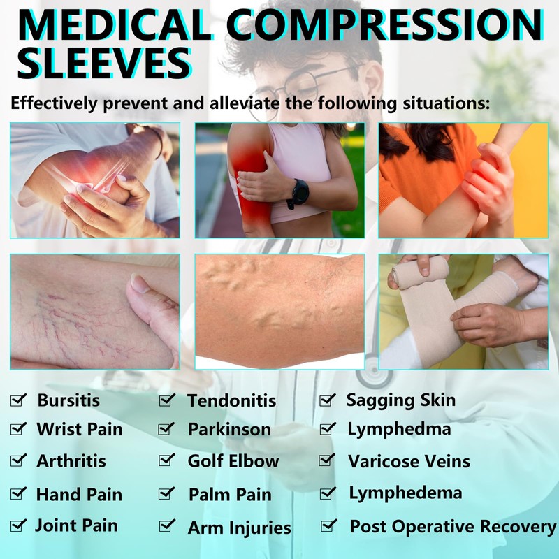* Suitable for women and men 20-30 mmHg Graduated Compression Full Arm Support for Edema,Post Surgery Recovery,Swelling,tendonitis elbow brace,pain in Bicep,Elbow or Forearm,Arthritis,Osteoporosis,Pain Relief,and more.Ideal for blood circulation,muscle and joint support to reduce swelling,alleviating symptoms of joint pain.* Promotes healing after tissue removal,trauma,prophylaxis,fracture,lymphangitis, thrombophlebitis,help tremendously with post operative arm recovery.