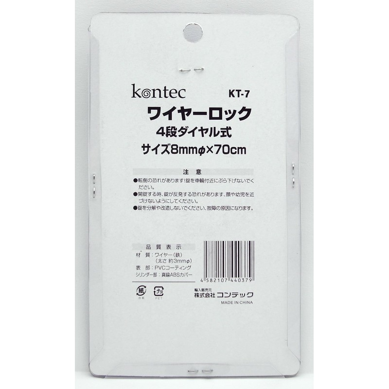KONTEC KT-7 Wire Lock, 27.6 inches (70 cm), 4 Level Dial Type